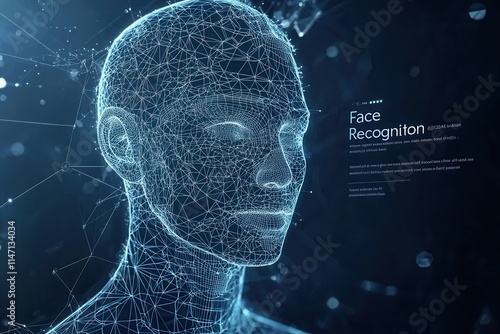 Digital facial recognition technology represented with abstract wireframe graphics