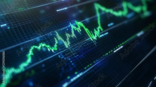 Digital Financial Chart with Green Line Graph and Data Analysis