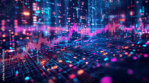 Digital financial data visualization with vibrant colors and graphs