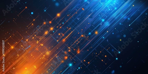 Digital Flux: Abstract artwork depicting a dynamic interplay of blue and orange digital streams, creating a futuristic and energetic visual experience.