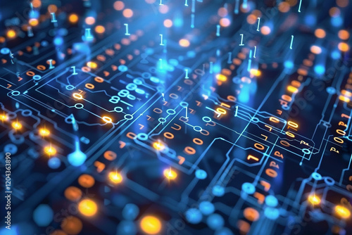 Digital Future: Blue Binary Data Flowing on a Computer Screen Background