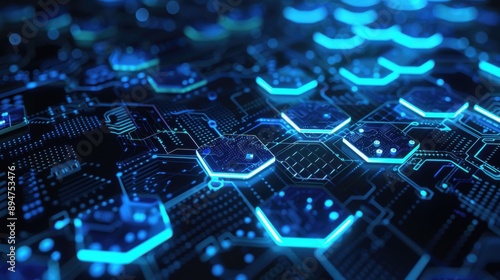 Digital Futurism Intricate Hexagonal Patterns in Neon Blue Abstract