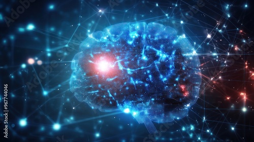Digital futuristic design of human head brain with artificial intelligence technology future thinking front background wallpaper AI generated image