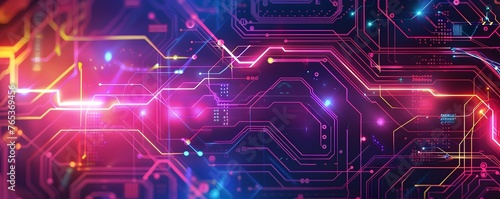 Digital futuristic technology abstract banner background Electronic circuit line illuminated by vibrant neon lights, forming a dynamic and interconnected network of systems