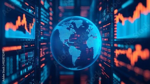 Digital globe surrounded by data analytics visualizations