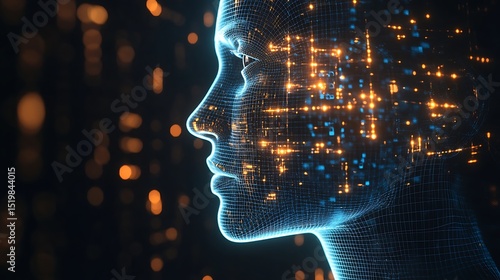 Digital Human Head Profile with Glowing Data Stream Artificial Intelligence
