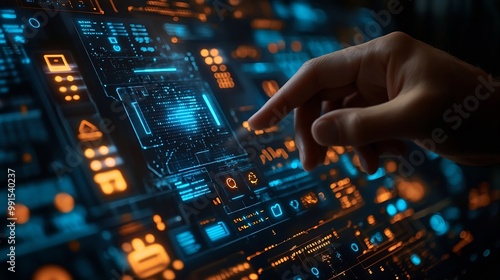 Digital information technology concept Businessman touching artificial intelligence screen : Generative AI