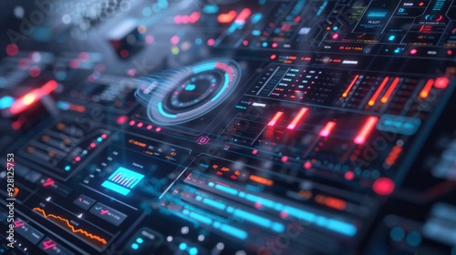 digital interface with AI-driven algorithms optimizing a complex system, visualized with dynamic graphs and charts