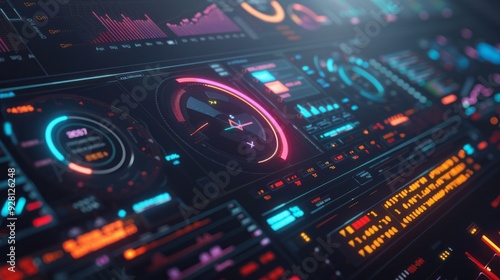 digital interface with AI-driven algorithms optimizing a complex system, visualized with dynamic graphs and charts