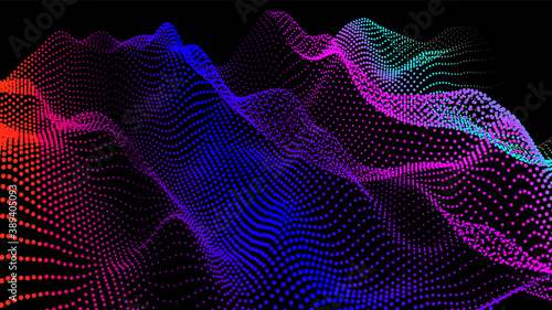 Digital landscape with flowing particles. Cyber or technology background.Vector illustration.geometric structure circles