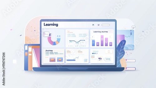 Digital learning dashboard on laptop screen with data analytics and educational charts