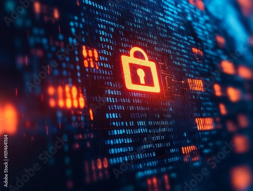 Digital lock symbol on a futuristic data background, representing cybersecurity, encryption, and data protection.