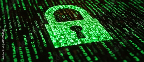 Digital lock symbol on green binary code background, representing data security and encryption methods
