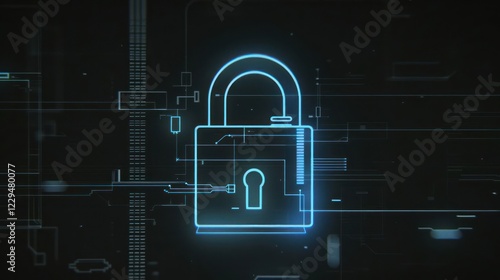 Digital lock symbolizing cybersecurity in a futuristic technology environment