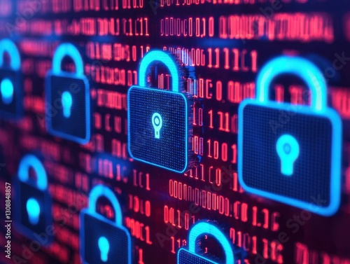 Digital locks on a binary code background, symbolizing cybersecurity and data protection in a modern technological landscape.