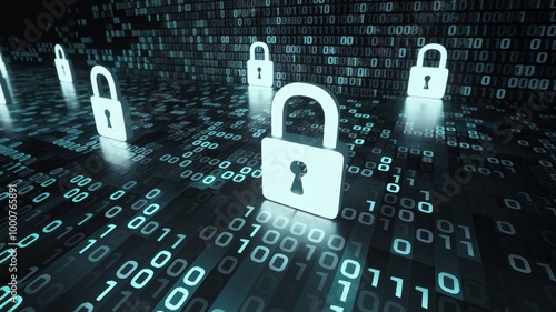 Digital Locks on Binary Code Background
