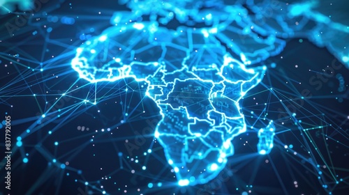 Digital map of Africa, concept of global network and connectivity, high speed data transfer and cyber technology