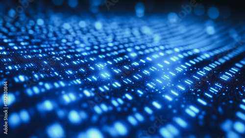 Digital Matrix: A mesmerizing abstract background featuring a vibrant blue digital matrix, with rows of glowing binary code forming a dynamic, futuristic pattern. Perfect for tech-related concepts.