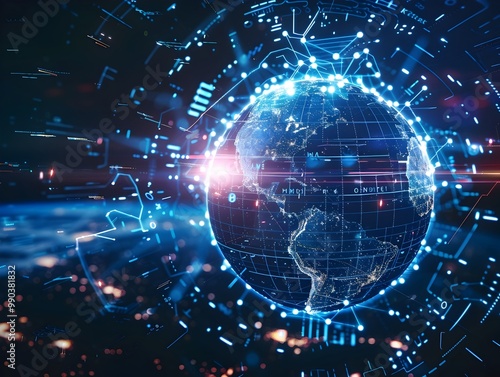 Digital Matrix Enveloping the Earth Visualizing the Interconnectedness of Technology and Nature