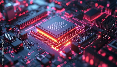 Digital motherboard texture design, technology electronics, software coding patterns, engineering communication concept for website header, web banner, and presentation