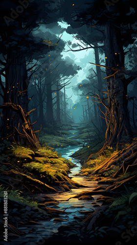 Digital mythology comic dark forest graphics poster mobile phone background