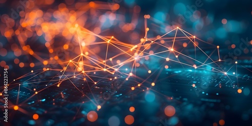 Digital network background with interconnected nodes and lines representing data exchange. Concept Digital Networks, Interconnected Nodes, Data Exchange, Technological Connections