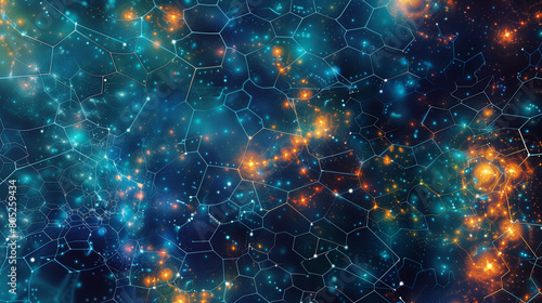 Digital Network of Interconnected Points and Lines Resembling a Cosmic Web