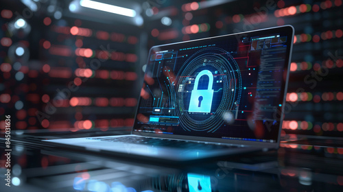 digital padlock display on laptop, cyber security technology online internet data protection cyber tech