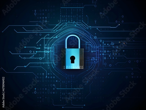 Digital padlock for computing system on dark blue background. Generative AI