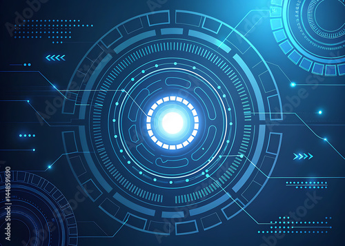 Digital padlock illustration featuring binary code and futuristic circles against a blue and white background: cybersecurity concept