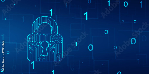 Digital Padlock on abstract technology background, Technology security concept. Modern safety digital background. Protection system, Cyber Security and safety information, personal data concept