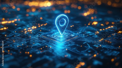 digital pin on a digital map, location system concept, created with generative AI technology