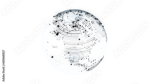 Digital planet earth with particles in cyberspace. The flow of scientific data in the global network. Science and technology futuristic background. Metaverse concept. 3D rendering.