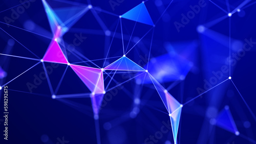 Digital plexus of glowing lines and dots and triangles. Abstract background. 3D rendering. Network or connection. 3d rendering.