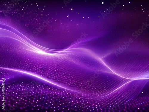 Digital purple particles wave and light abstract background with shining dots stars
