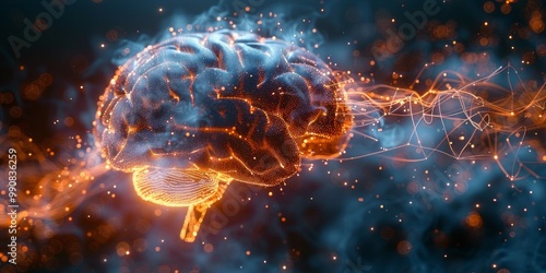 Digital representation of a human brain with glowing neural connections and data visualization elements