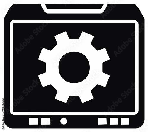 Digital Screen Displaying Gear Icon for System Settings Configuration and Technical Support