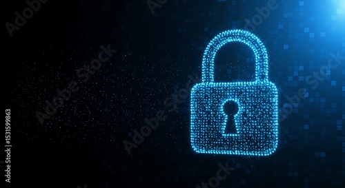 Digital security concept glowing padlock icon for data protection and cyber security technology design