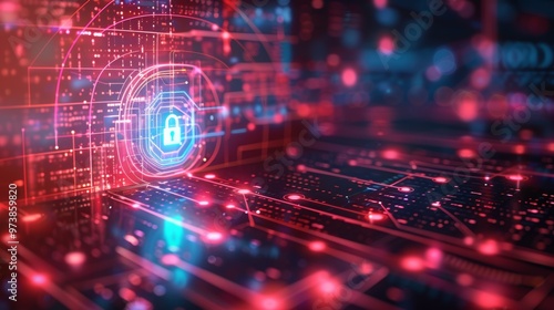 Digital Security Concept with Lock Symbol Representing Mitigating Risks in Cybersecurity and Data Protection