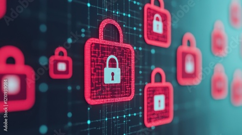 Digital Security Concept with Red Lock Icon on Data Network Background
