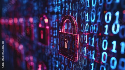 Digital Security Concepts with Binary Code, Lock Icon, and Futuristic Technology Background for AI Adaptability