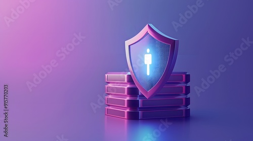 Digital security shield over database, representing cybersecurity and data protection on a purple gradient background.