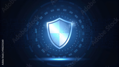 Digital shield icon glowing with binary code, representing security and protection