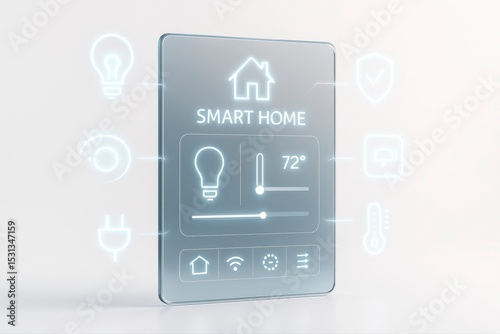 Digital smart home interface displaying controls and icons on screen