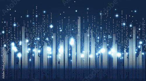 Digital sound wave pattern with bright blue lights creating vibrant atmosphere. This design evokes energy and creativity, perfect for music