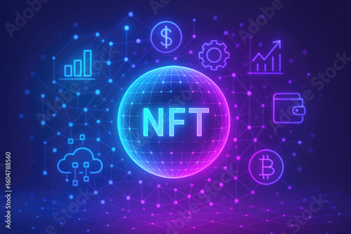 Digital Sphere With NFT And Financial Symbols technology blockchain