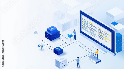 Digital team collaborating on network infrastructure design in a modern office setting