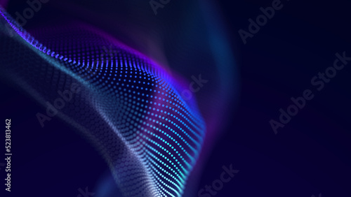 Digital technology background. Abstract structure with glowing dots. Big data. 3D rendering