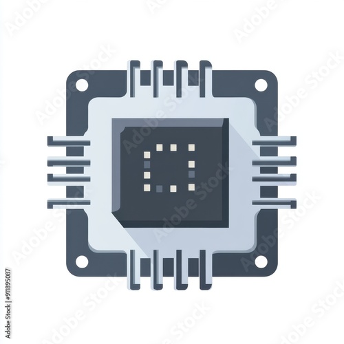Digital Technology Concept - Computer Chip Icon in Flat Design on White Background