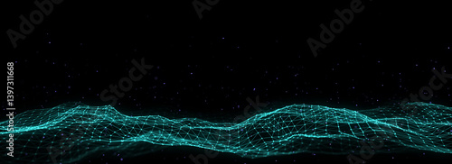 Digital technology wave. Dark cyberspace with motion dots and lines. Futuristic digital background. Big data analytics. 3d rendering.